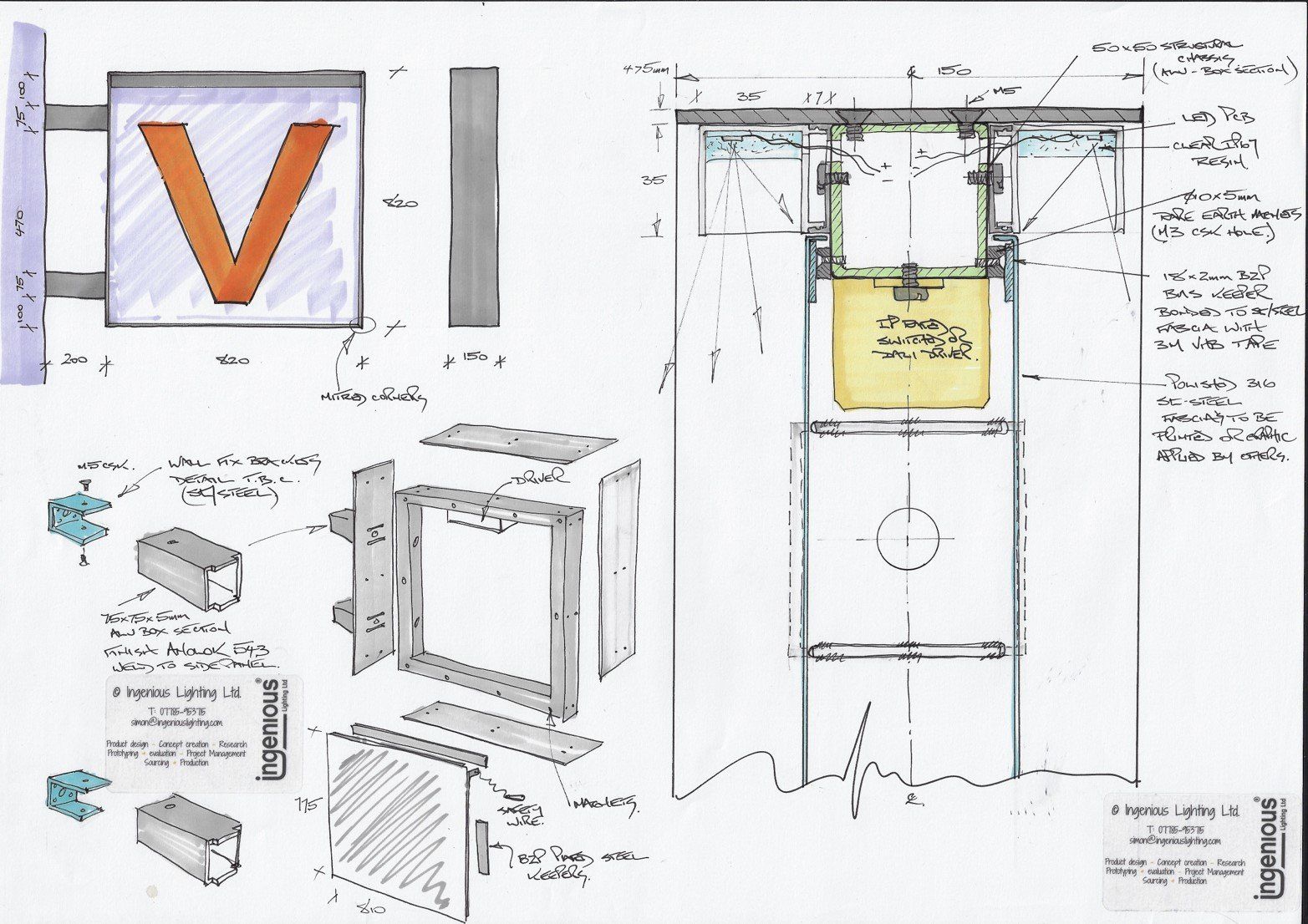 Bespoke illuminated signage, Magnetic signage panels awaiting graphics. Anodised Graphite aluminium construction / DALI control.