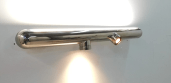 Bespoke Polished IP67 - 316 lighting bars with adjustable spotlights and indirect uplight to bridge/upper and main decks.