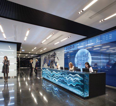 Special feature lighting added to glass walls to signify a knock out chart – complex installation to conceal cabling and ensure continuous illumination.